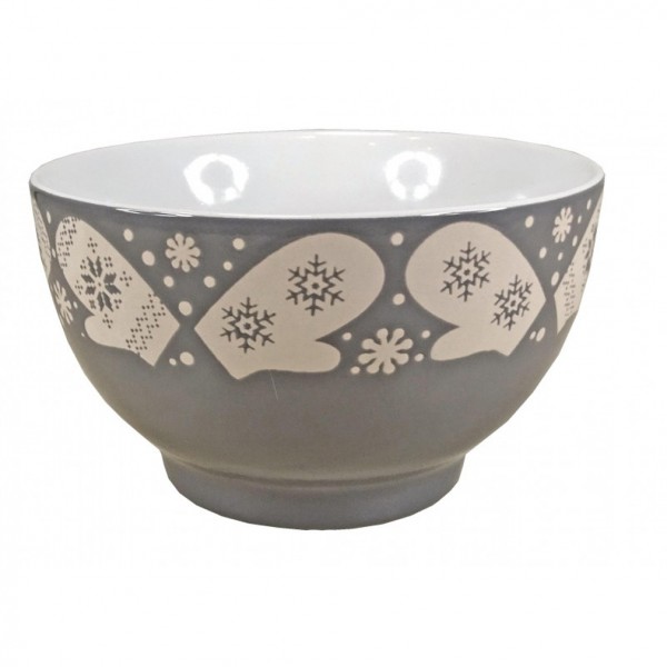 Très beau bol Gris en céramique, motifs "Flocons", intérieur Blanc.