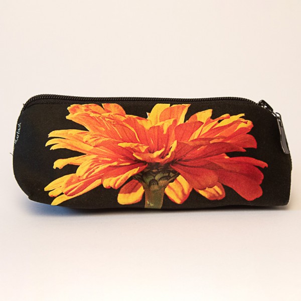 Trousse à crayons collection fleurs - Zinnia orange fond noir