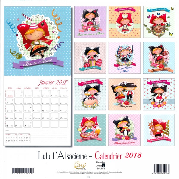 - Calendrier à suspendre entièrement illustré par des magnifiques illustrations sur le thème Lulu l'Alsacienne