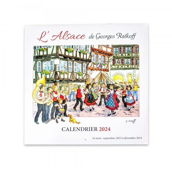 - Calendrier à suspendre entièrement illustré par des dessins de Georges Ratkoff sur le thème de l'Alsace.