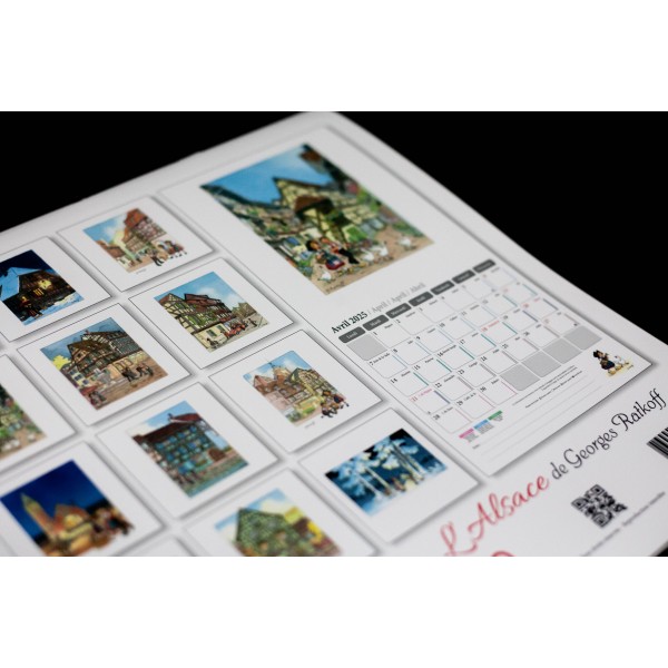 - Calendrier à suspendre entièrement illustré par des dessins de Georges Ratkoff sur le thème de l'Alsace.