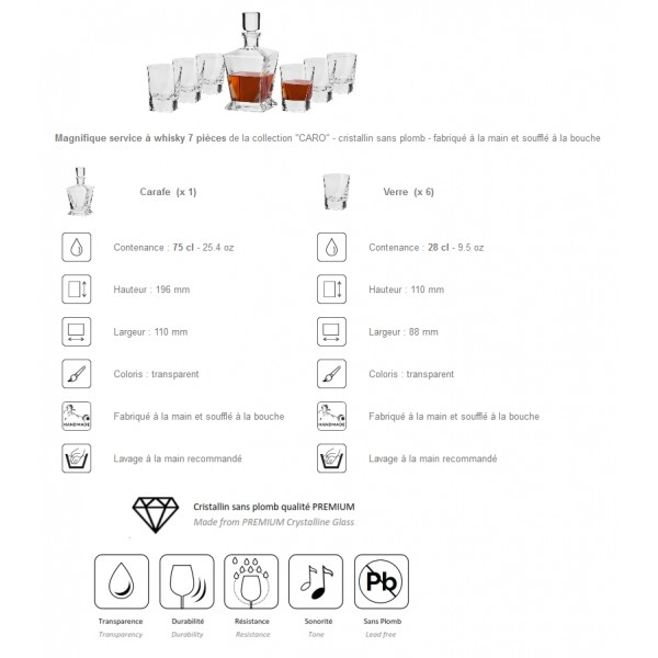 Coffret 7 pièces service à Whisky "CARO" - cristallin soufflé bouche