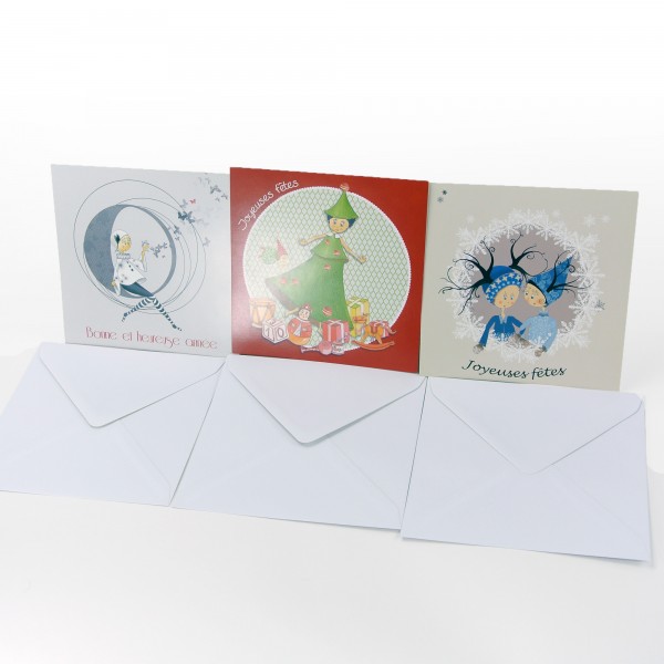 Assortiment de 3 cartes carrées + enveloppes de fabrication française de haute qualité
