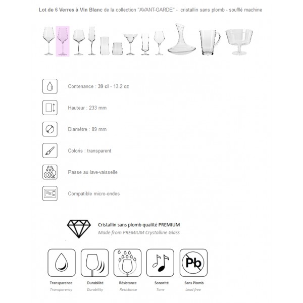 6 Verres à Vin Blanc "AVANT-GARDE" 39 cl - cristallin sans plomb