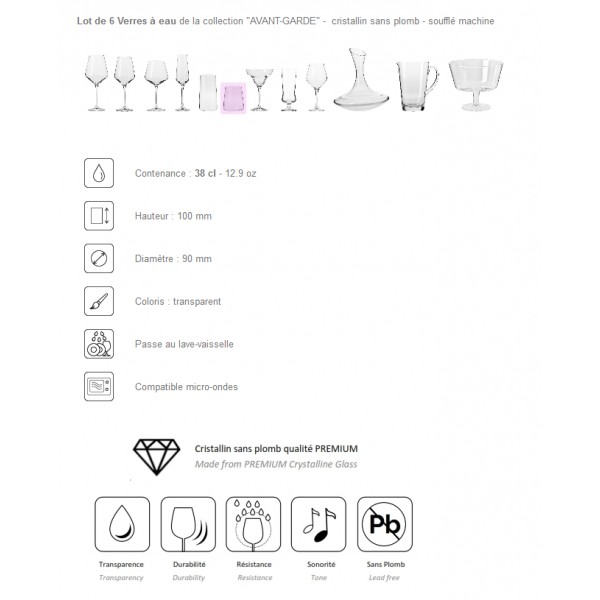 6 verres à eau "AVANT-GARDE" 38 cl - cristallin sans plomb