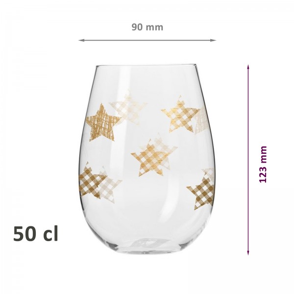 6 verres avec décor étoiles de Noël dorées - 50 cl