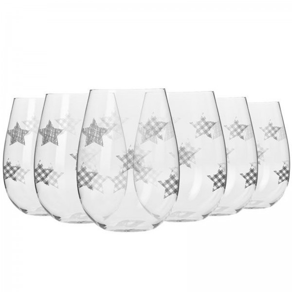 6 verres avec décor étoiles de Noël argentées - 50 cl