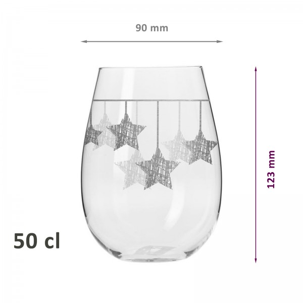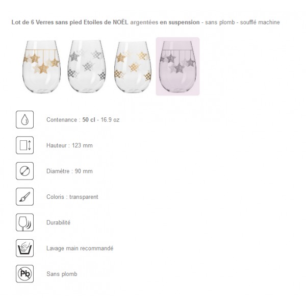 6 verres avec décor étoiles de Noël argentées suspendues - 50 cl