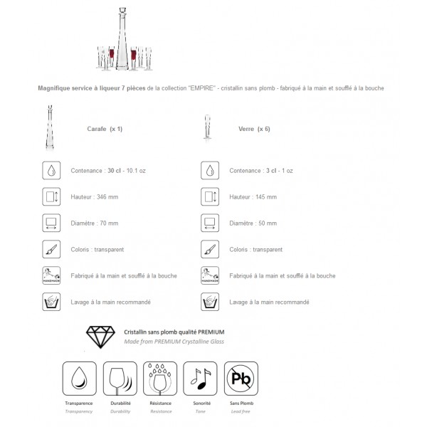 Coffret 7 pièces service à liqueur "EMPIRE" - cristallin soufflé bouche