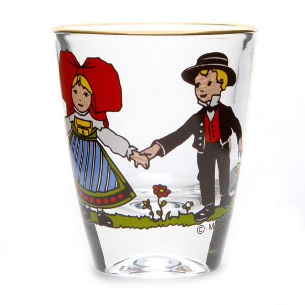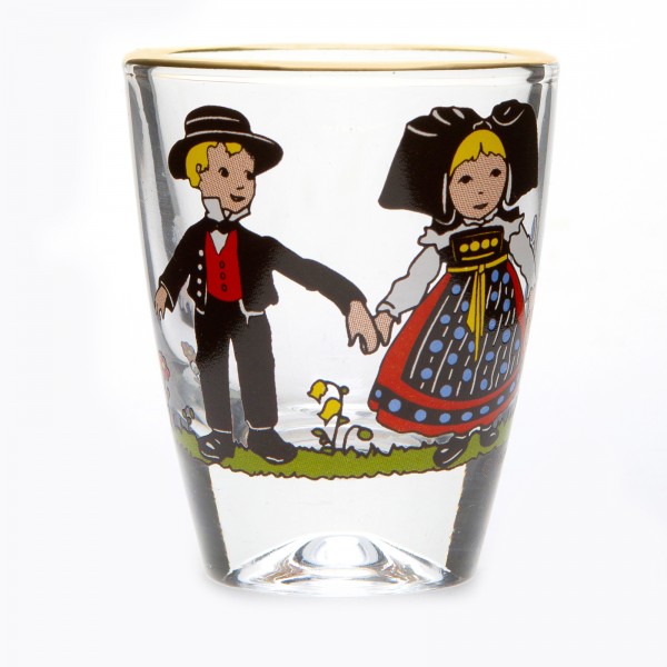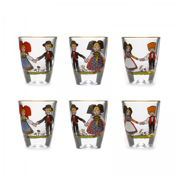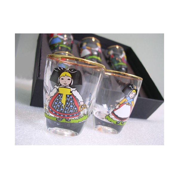 Coffret de 6 verres à Eau de Vie spécial Alsace (schnapps) avec décors HANSI3 décors (2 verres par décor)