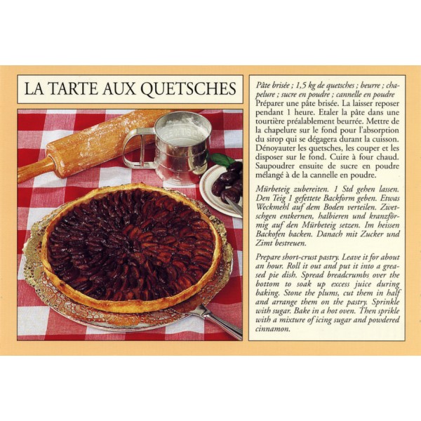 Carte postale collection recette alsacienne - "La tarte aux quetsches"