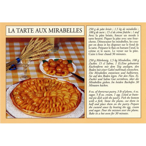 Carte postale collection recettes alsaciennes - "La tarte aux mirabelles"