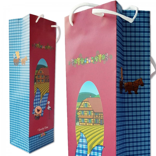 Sac pour emballage cadeau d'une bouteille de vin, de crémant, ou de schnapps (eau de vie d'Alsace)