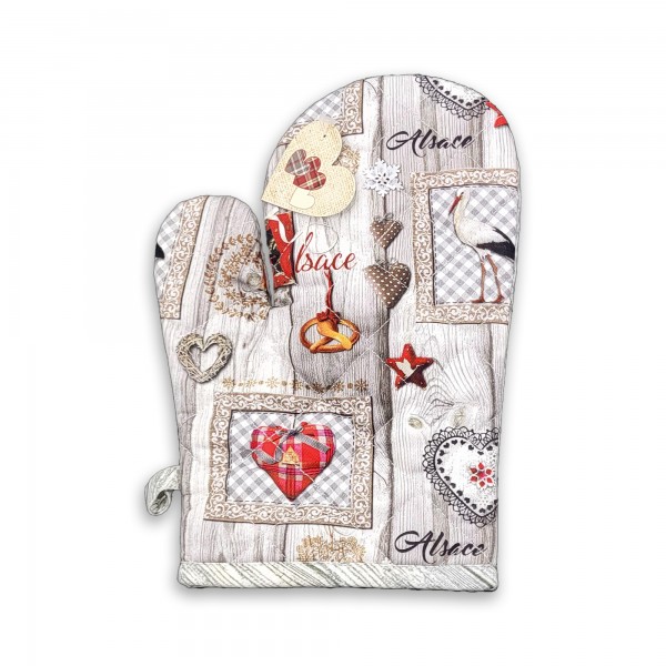 Magnifique gant de cuisine en coton - Colection "Misele"- Dimensions : 19 x 28 cm- 100% coton (extérieur)- 100 % polyester (remplissage)- Lavable en machine : 30°