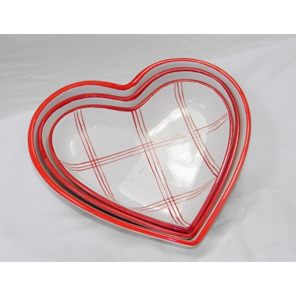 Set 3 coupelles "Coeur d'Alsace"- chaque coupelle à un motif différent- Dimensions : Grande : environ 22 cm de longueur et 4,5 cm de hauteur Moyenne : environ 20 cm de longueur et 3 cm de hauteur Petite : 18 cm de longueur et 2 cm de hauteur