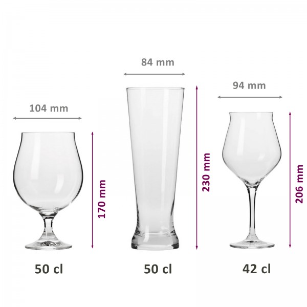 Coffret de 6 verres à bières pour dégustation - 3 différentes formes et contenances