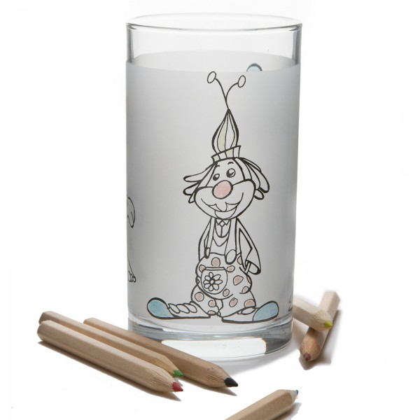 Verre avec 3 clowns à colorier - réutilisable après lave-vaisselle