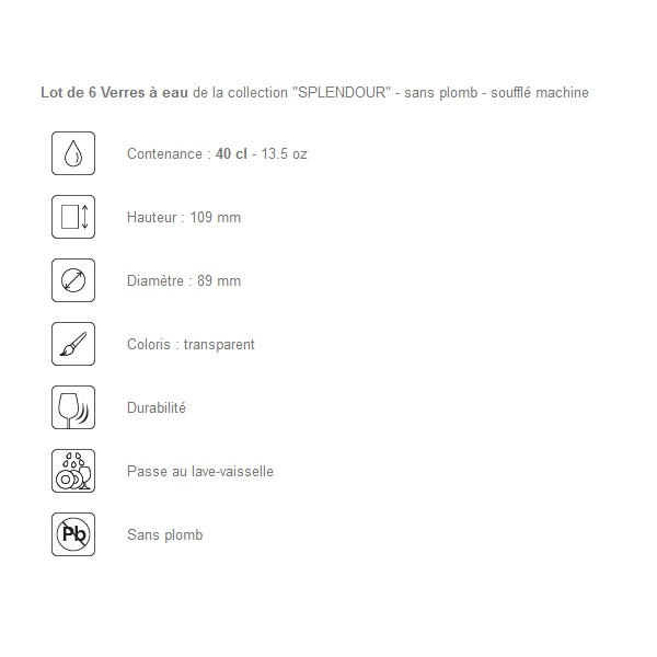 Lot de 6 Verres à eau de la collection "SPLENDOUR" - sans plomb - soufflé machine