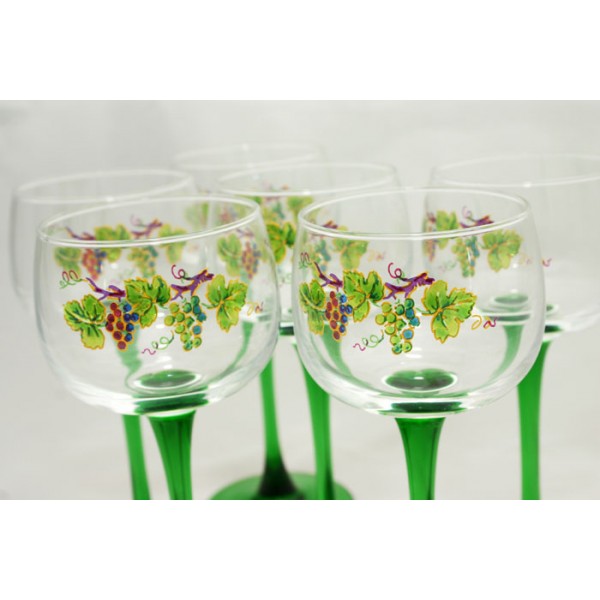 6 Verres à Vin d'Alsace motif VIGNOBLE