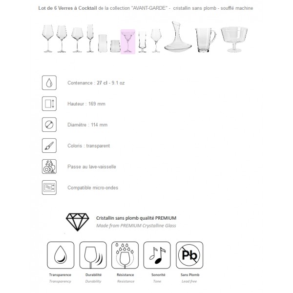 6 verres à Cocktail "AVANT-GARDE" 27 cl - cristallin sans plomb
