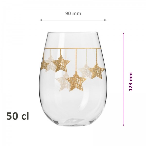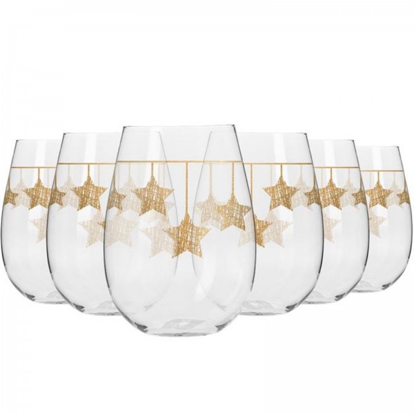 6 verres avec décor étoiles de Noël dorées suspendues - 50 cl